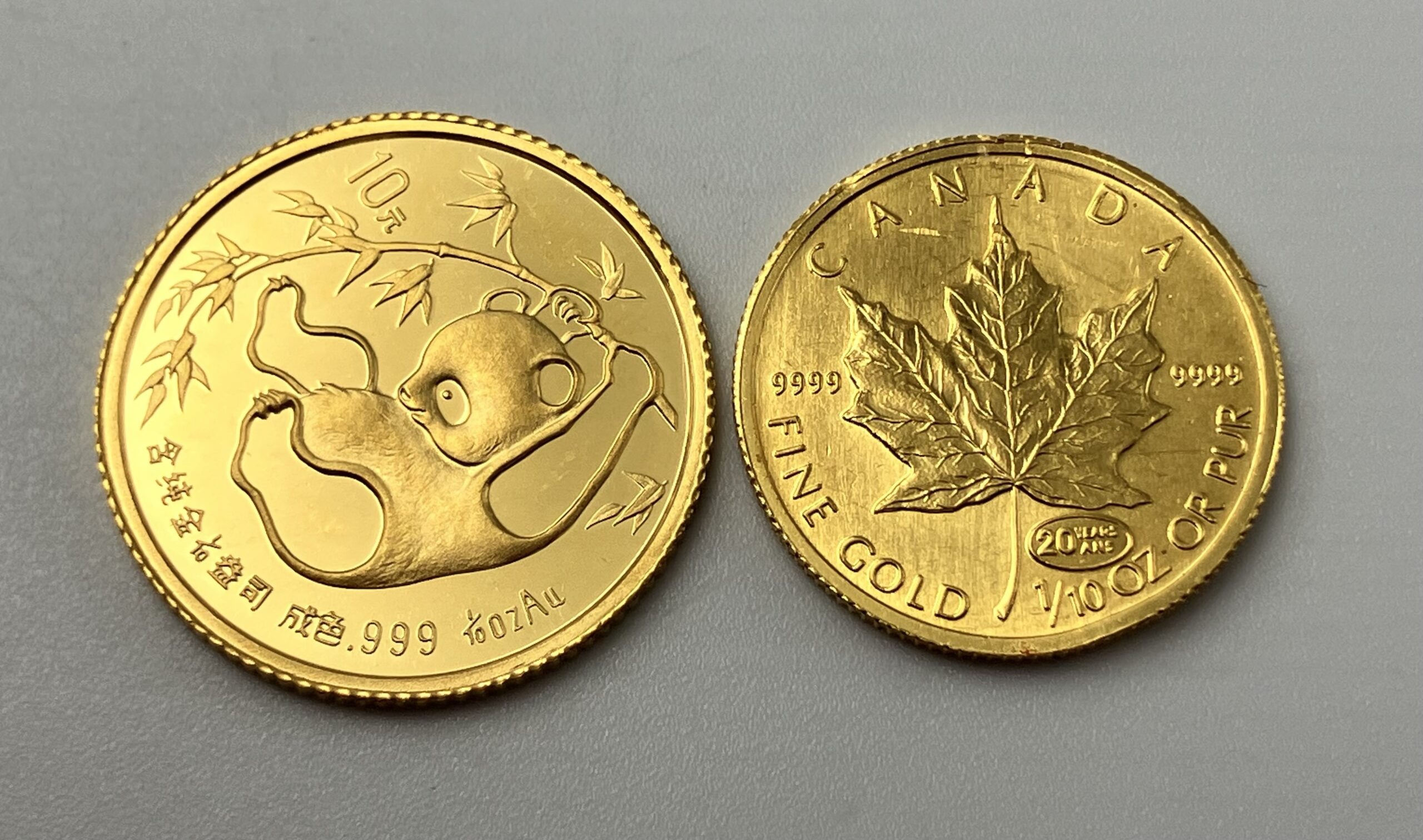 中国 パンダ金貨10元・メープルリーフ1/10オンス金貨買取